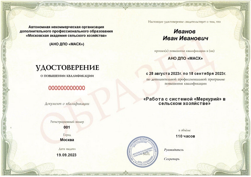 Курс повышения квалификации Работа с системой «Меркурий» в сельском хозяйстве (110ч)