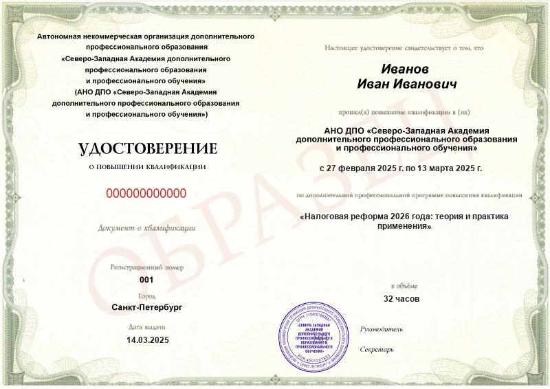 Курс повышения квалификации Налоговая реформа 2026 года: теория и практика применения (32ч)