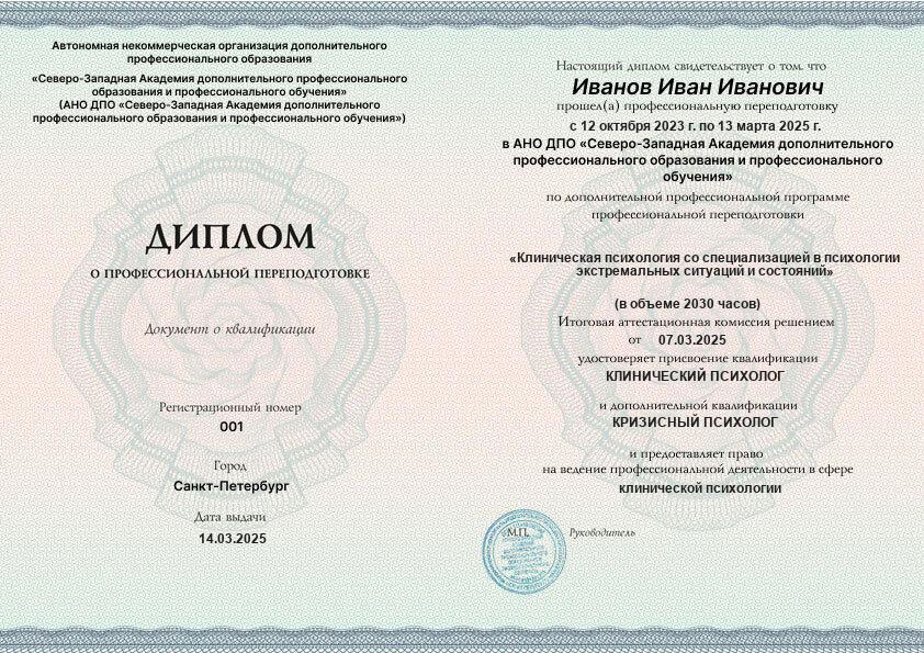 - 2 квалификации: Клинический психолог + Кризисный психолог